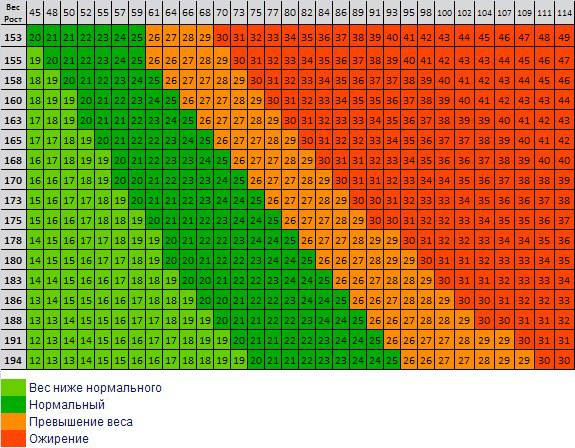 В среднем индекс в норме от 18 до 25, и я попал в эту норму.